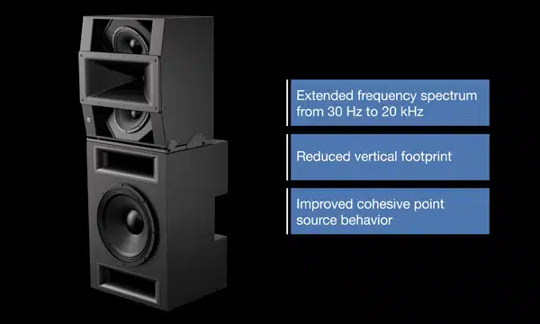 Because of its concentric driver configuration, the total cabinet size is vertically reduced, and the entire system performs more like a cohesive point source.