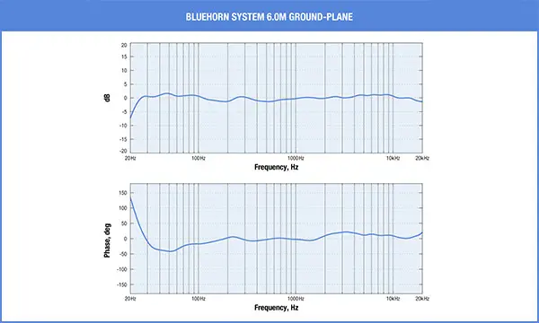 Measurement traces reveal Bluehorn System’s flat frequency response and unprecedented phase linearity across the audible bandwidth.