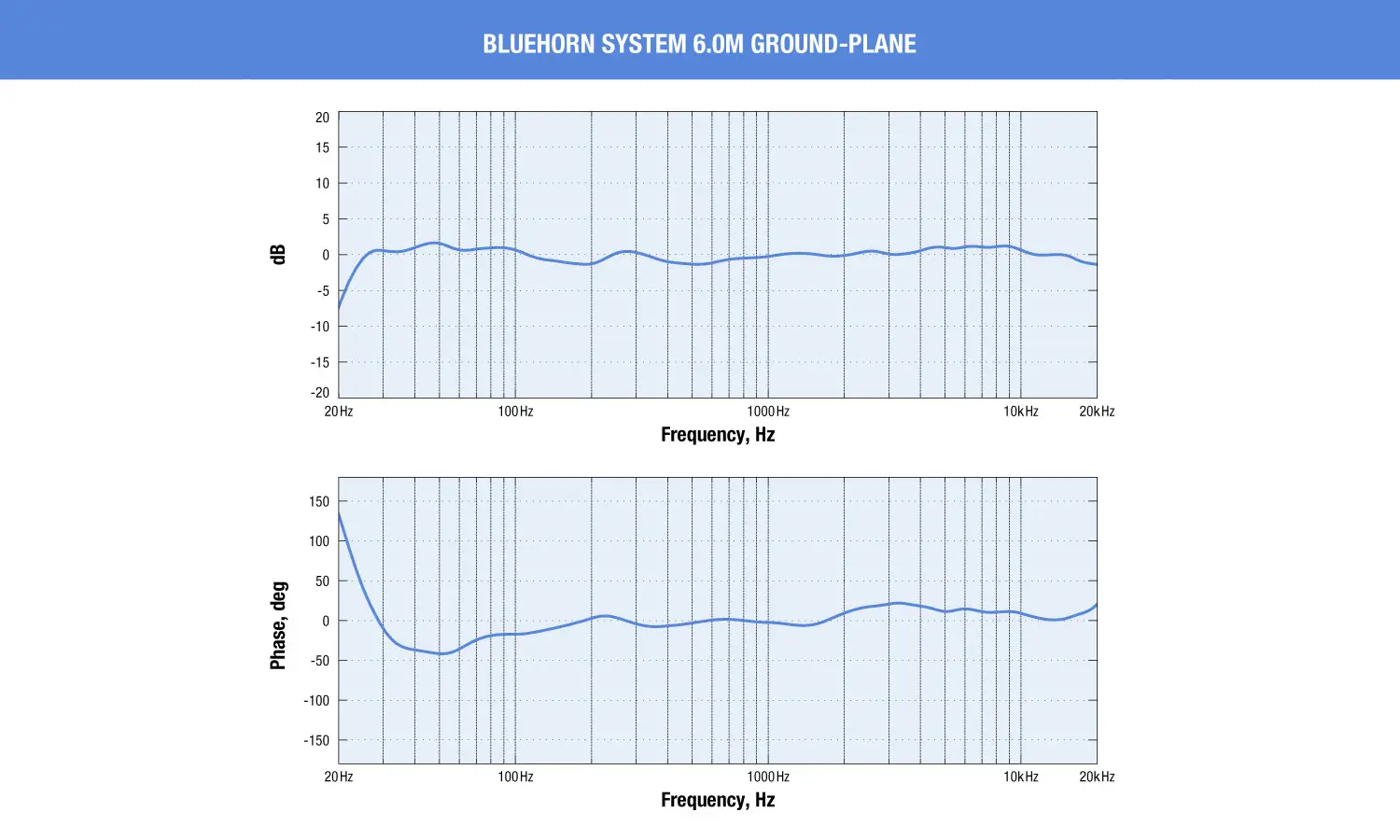 Measurement traces reveal Bluehorn System’s flat frequency response and unprecedented phase linearity across the audible bandwidth.