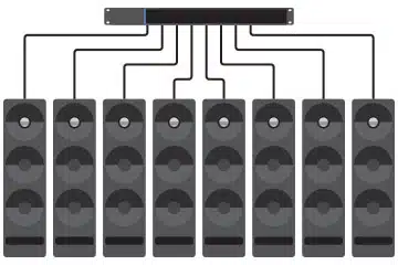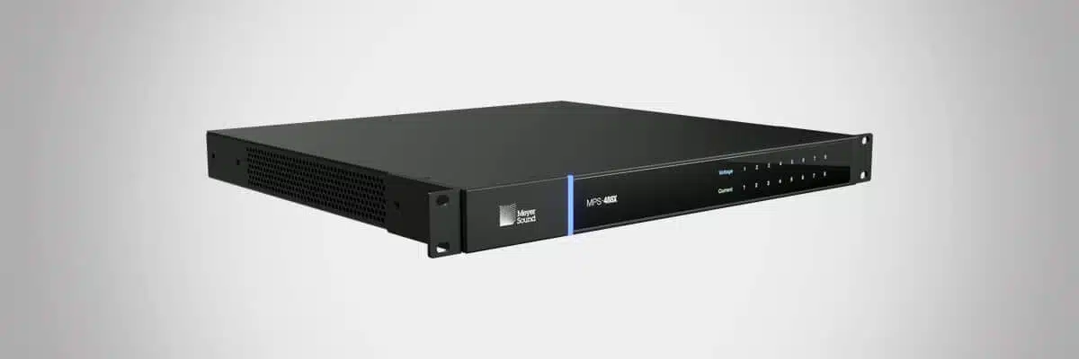 MPS-488X: Comprehensive System MonitoringFront-panel LEDs provide real-time feedback on critical data such as voltage status and load current levels; A built-in RJ45 port lets users access telemetry data and manage device firmware. Telemetry data can be monitored remotely on a Mac or PC using Meyer Sound’s free Nebra software. | MPS-488X: Your Big-System IntelligentDC HubThe MPS-488X is ideal for use with Meyer Sound’s 48V DC IntelligentDC line of loudspeakers, including the powerful ULTRA‑X20 family, the UP‑4slim ultra-compact loudspeaker, and the USW‑112XP compact subwoofer. Multiple Ashby‑5C, Ashby‑8C, or MM‑4XP loudspeakers can be driven from each channel maximizing power and efficiency in just 1RU of space. |